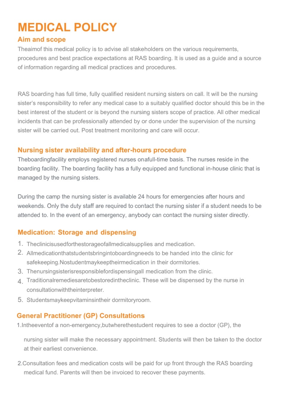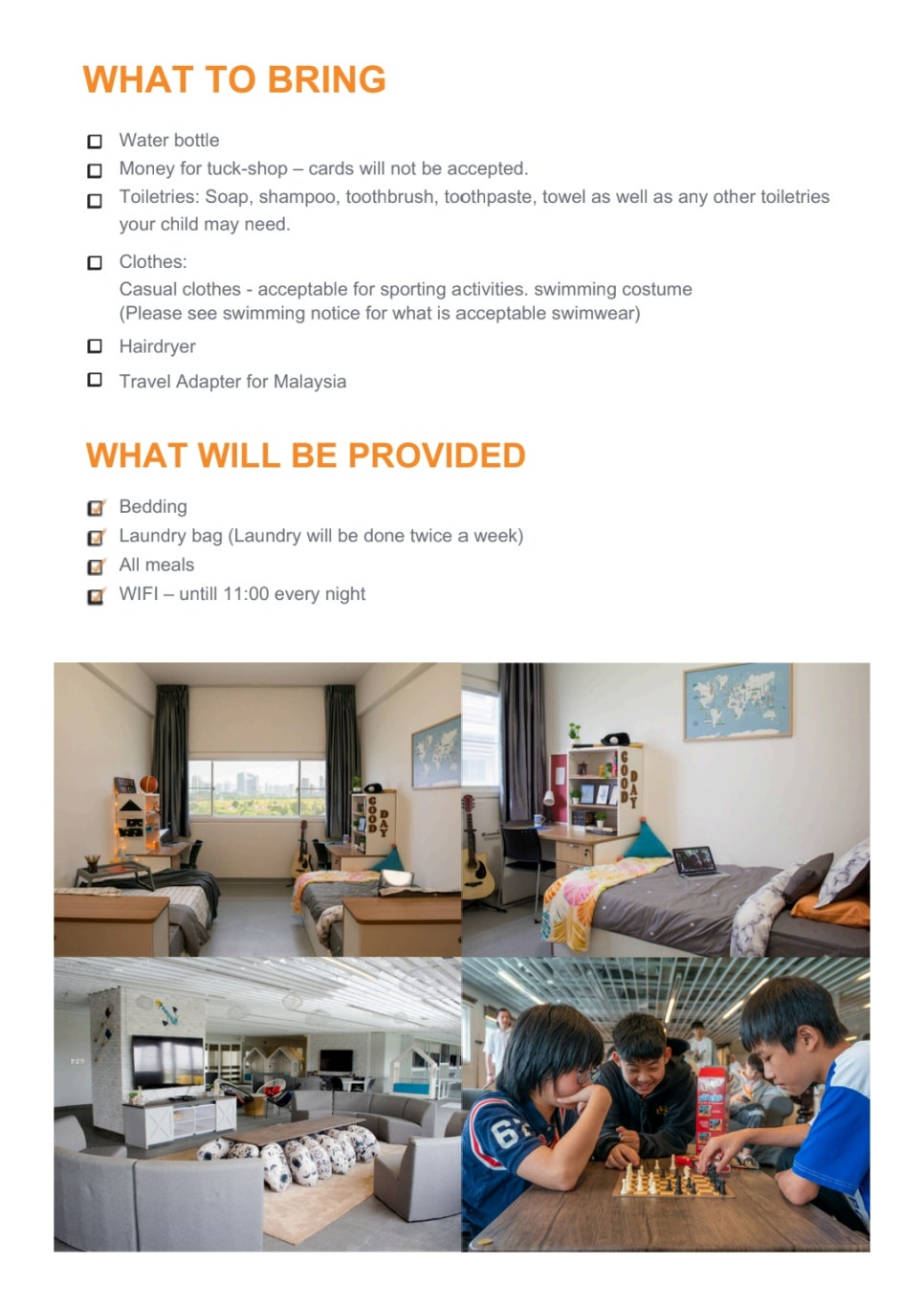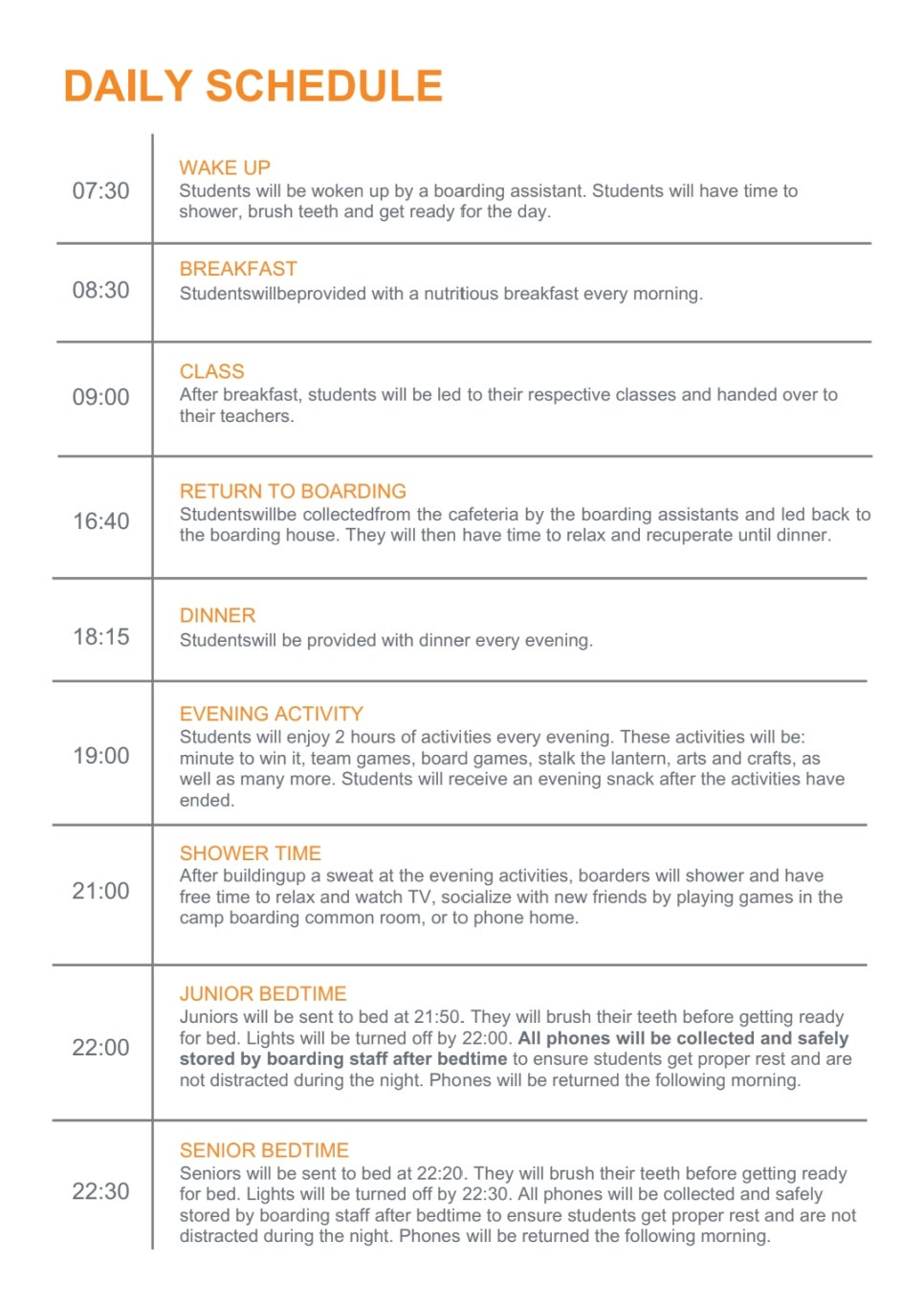 CHECK-IN TIME & CHECK-OUT TIME FOR BOARDING STUDENTS