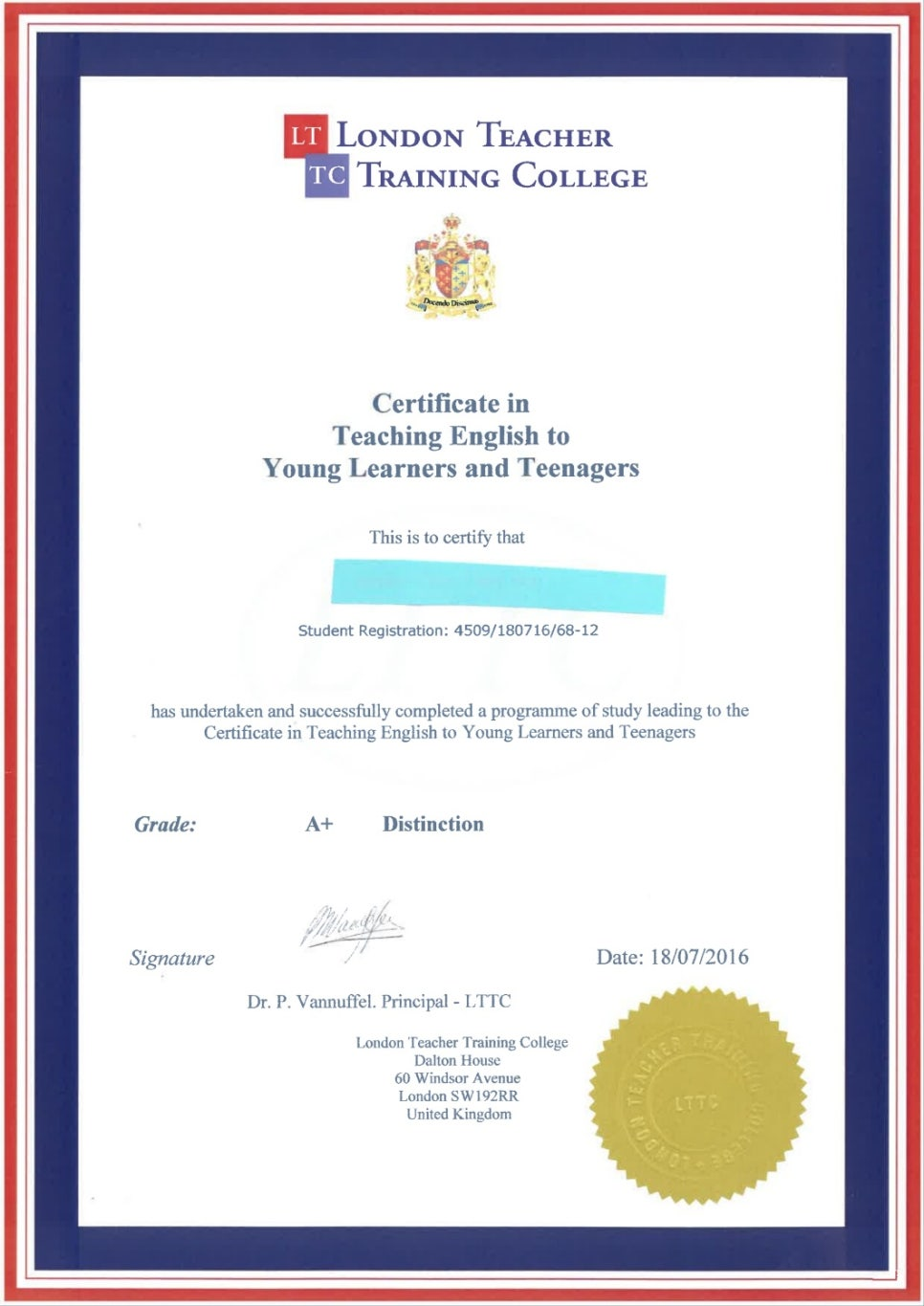 2. Certificate in Teaching English to Young Learners and Teenagers (TEYLT)
