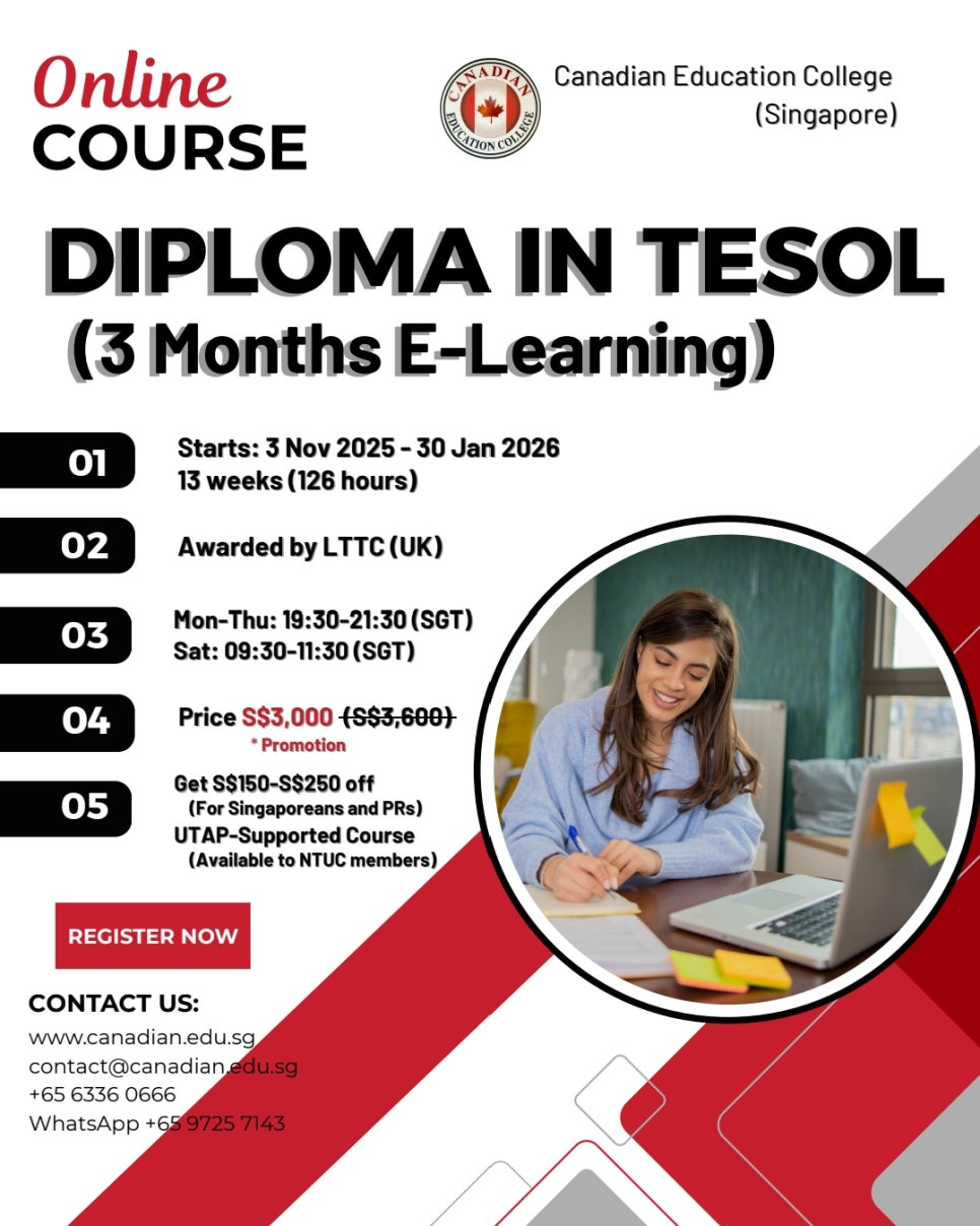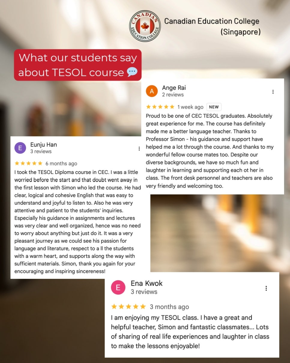 오늘은 싱가포르의 캐네디언 에듀케이션 칼리지 (Canadian Education College)의 실시간 온라인 테솔 디플로마 (Diploma in TESOL) 과정에 관하여 안내드리려고 합니다.