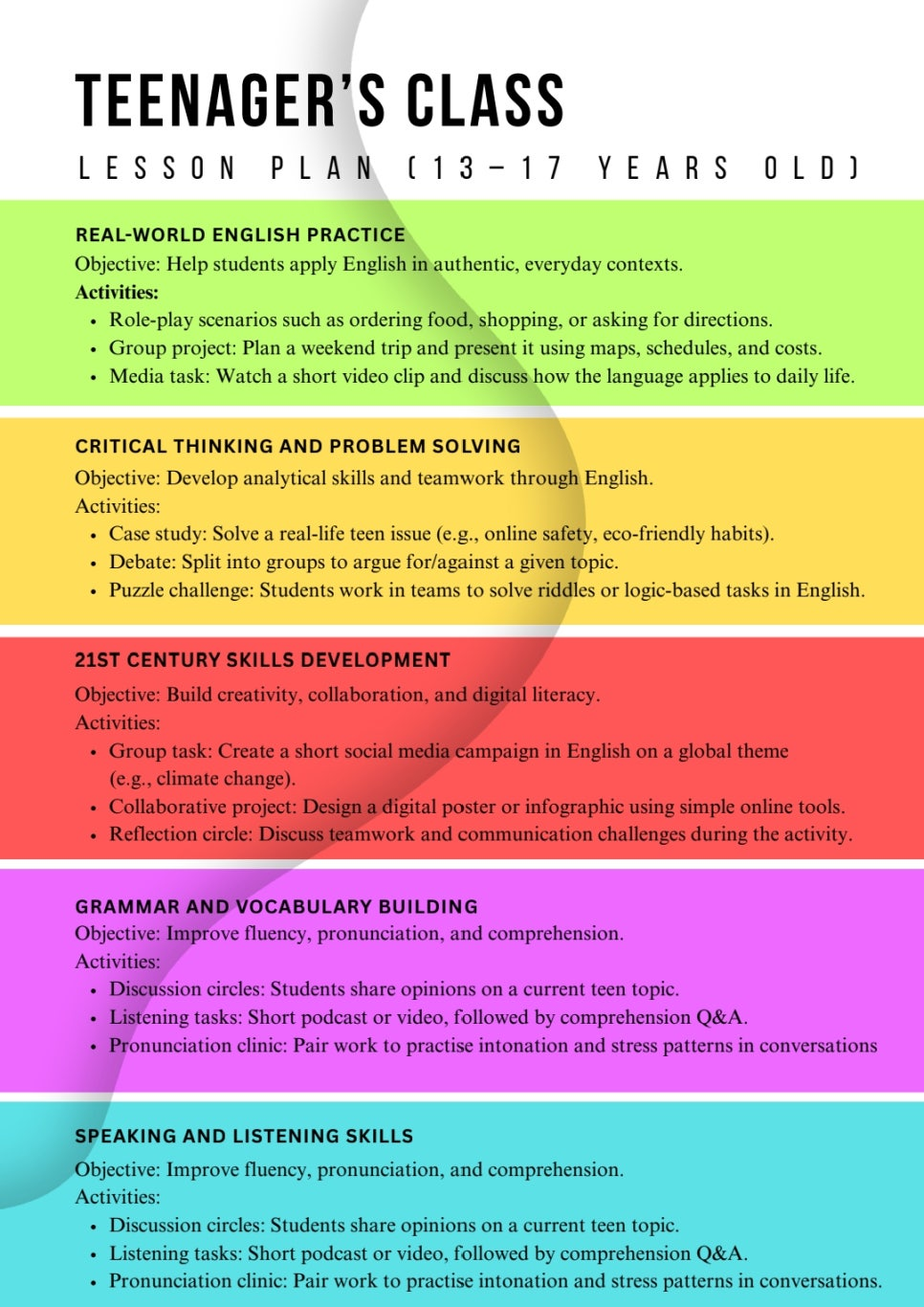 Teenager's Class 중학교 & 고등학생 대상(만 13-17세)